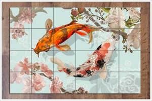 Koi Fish With Flowers Ceramic Tile Mural 24 X 36 Kitchen Back Splash Ebay